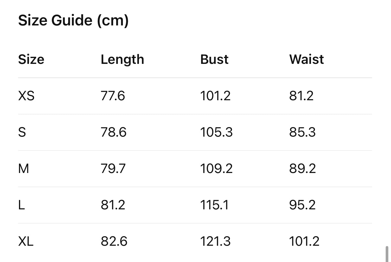 Dacă nu ești sigură de mărimea ta sau te afli între diferite mărimi, te rugăm să verifici secțiunea „Care este mărimea mea?” de mai sus și să introduci măsurătorile exacte ale bustului, taliei și șoldurilor — vom ajusta piesa pentru a se potrivi perfect corpului tău.